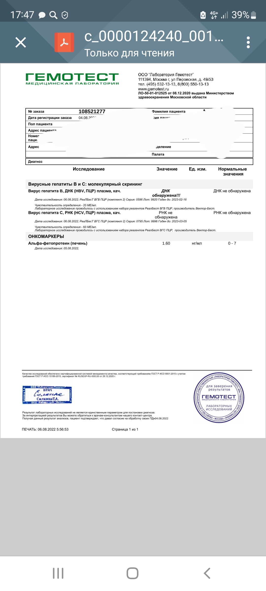 Всем привет! Первый раз сдавала в Гемотесте, скажите, как интерпретировать результат на ПЦР геп В, ДНК обнаружена, никаких числовых данных, это так и должно быть?