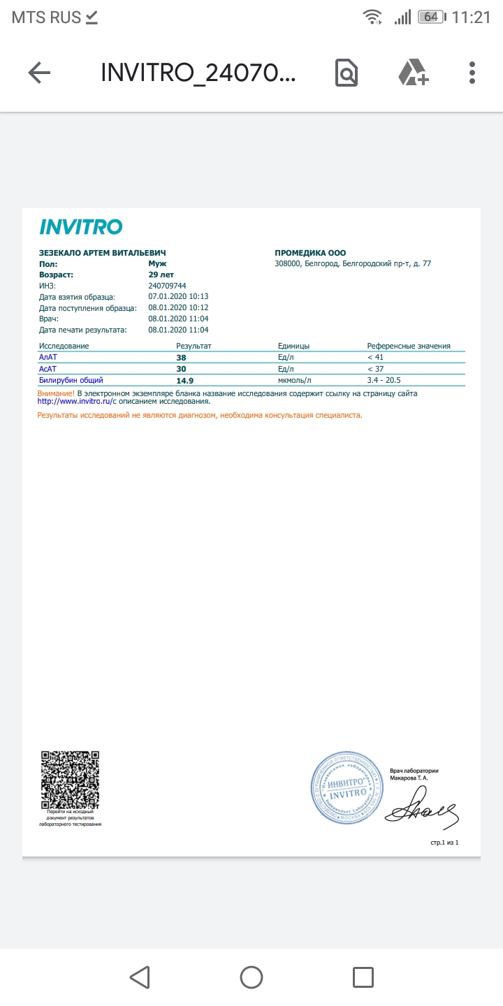 Результаты анализа алт, аст, билирубин, у меня таких анализов не было 1.6 года даже когда колол эсенцыале форте н 10 уколов было 60 аст и 40 алт таблеточки реально работают
