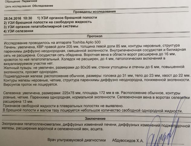 Немного повышенно содержание нетрофиллов в асцитной жидкости, белок перестал вылетать с мочей.