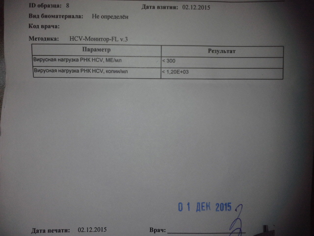 8 недель, 29.12.2015 г. - вирус не обнаружен (60 МЕ/мл)
