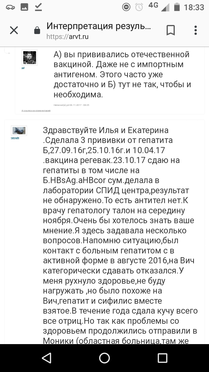 kargyraa, вот несколько примеров, их множество. Искать и скринить нет времени. Читала где-то,девушка экстренно прививалась 0,7,21 и через месяц нет антител вообще. Далее поставила Энжерикс и антитела появились,в низком титре 200 с чем-то). Первая вакцина была Регевак. До прививки,все анализы были сданы. Гепатита не было. Муж ее носитель. Она беремменнеть собиралась. Можно долго дискутировать. И на этой ветке есть такие,не ответчики.