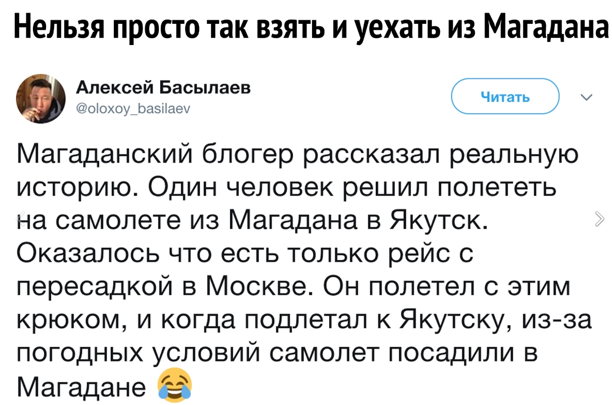 Редиска, за самолёт в Якутск с посадкой в Магадане - выдумка на 146%. Там полторы тыщи километров лету, ни один коммерческий рейс такой резерв не берет, а рядом с Якутском есть другие запасные гораздо ближе.