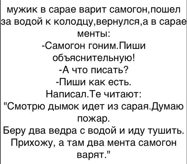 Возвpащается в очеpедной pаз рабочий из командиpовки и пишет отчет: