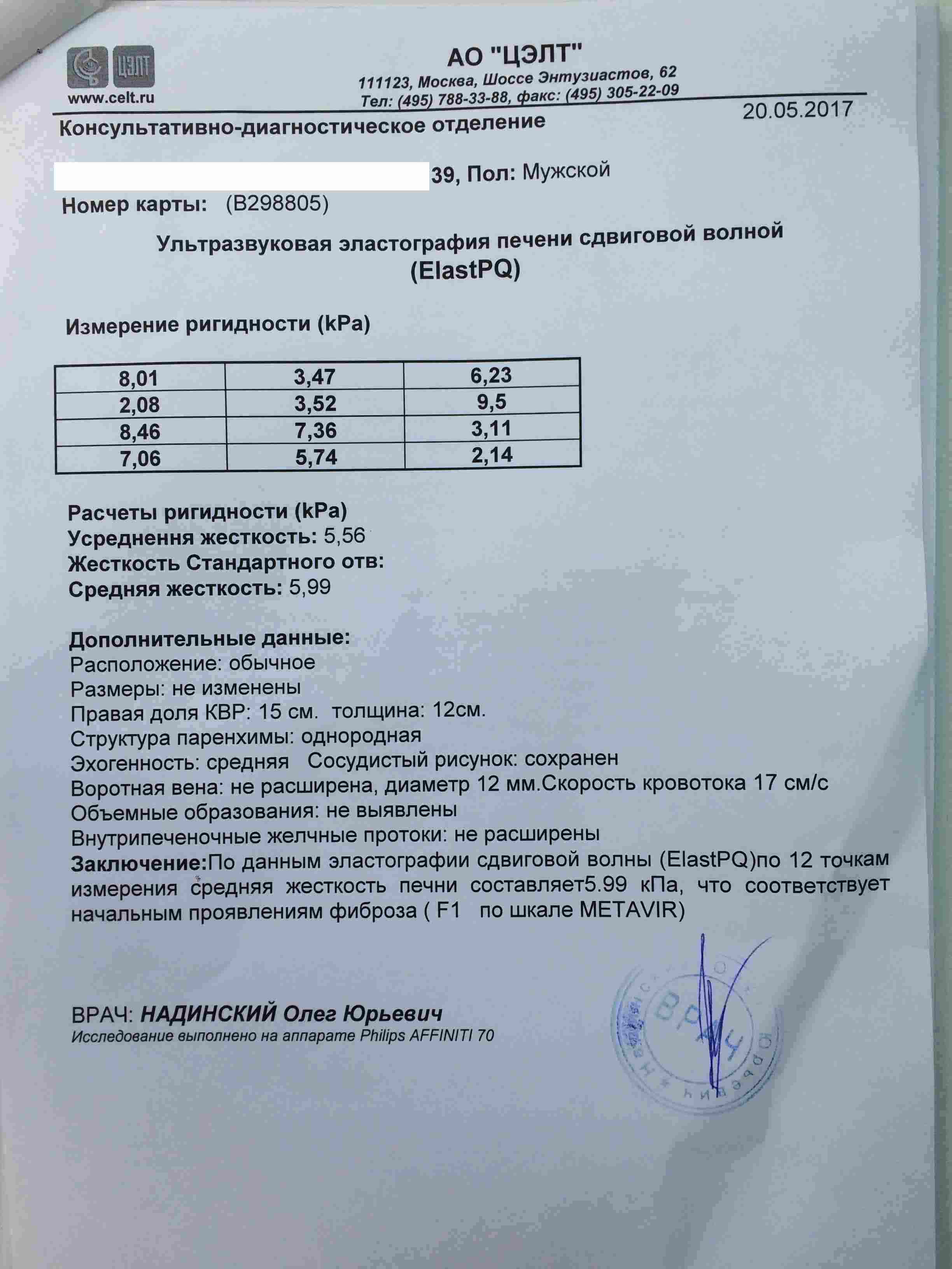 Большое спасибо форумчанам, и девушке рентгенологу в "Медэлит", к сожалению не запомнил её ФИО, за правильные советы и честную работу. Итак по итогам моей поездки на эластографию сдвиговой волны у меня f1 5.99 кПа. Файл во вложении.
