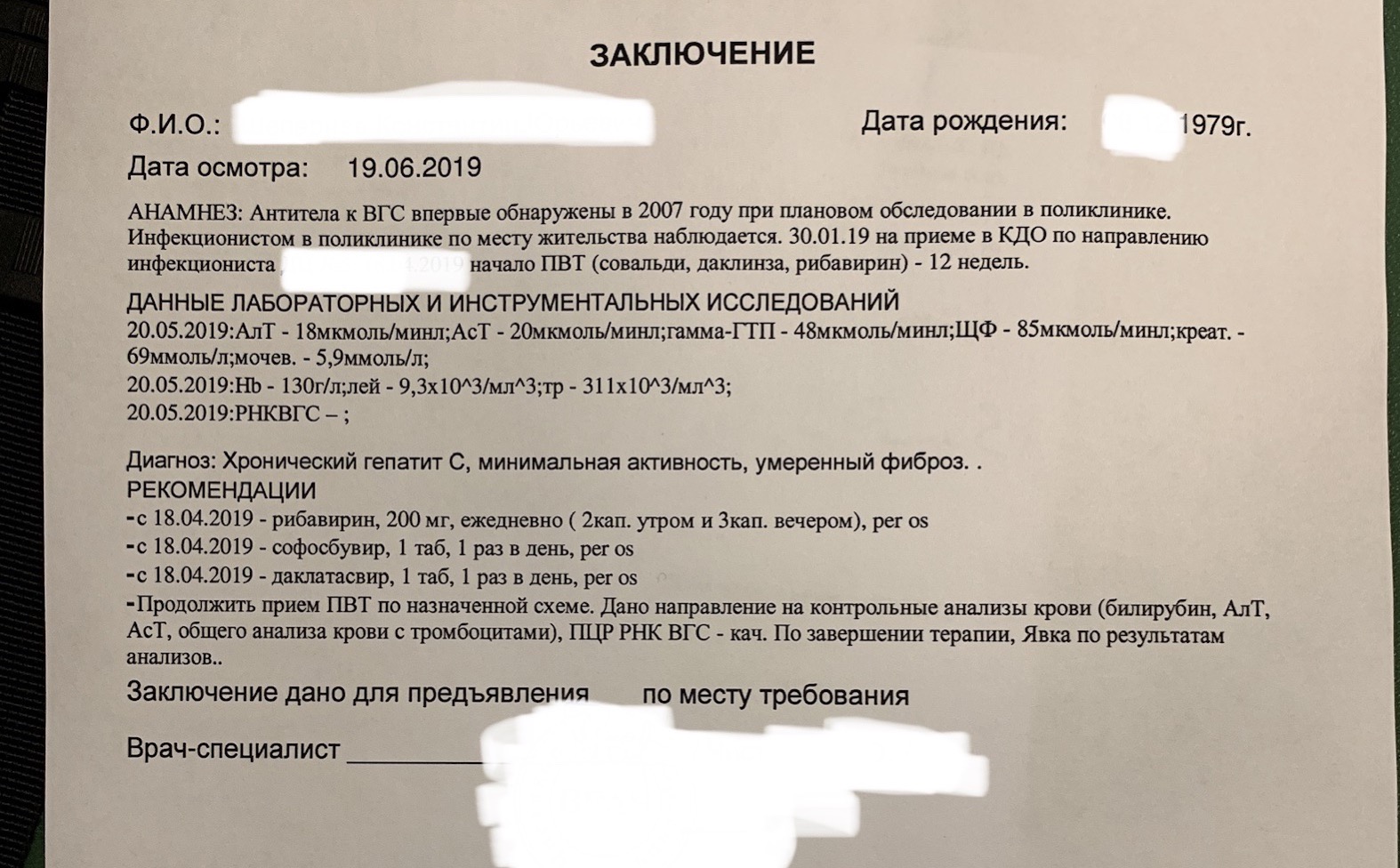 Старт 19.04.19. Совальди+Даклинза+Рибавирин 12 недель