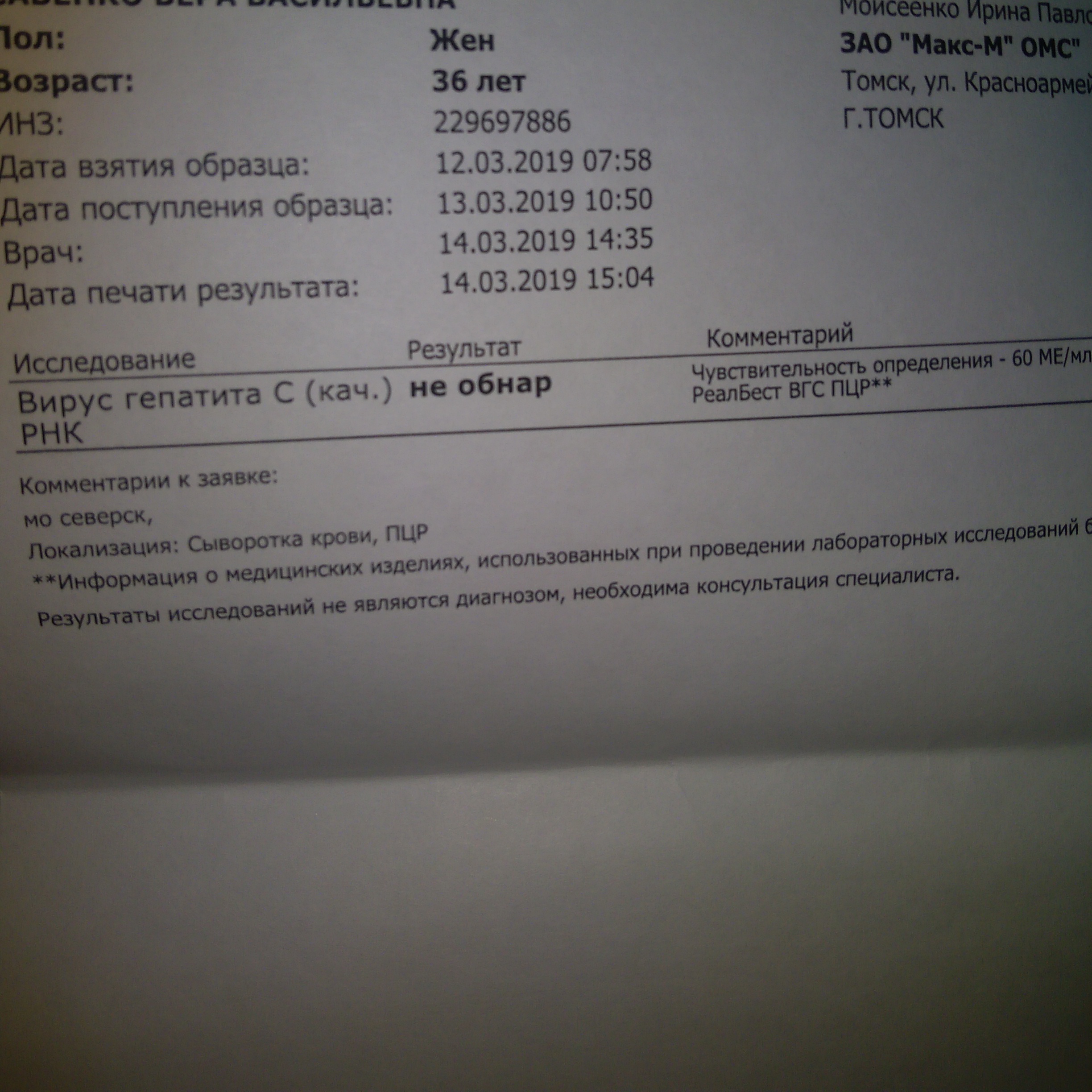 Verok33, Привет.. В Томске можно ещё здать ПЦР в СПИД центре на первом этаже там недорого и вроде делают нормально только по-моему результат дней через 10...Удачного лечения.