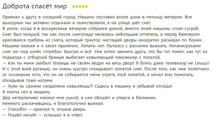 - А если бы я стояла в фуфайке, а не в норковой шубе, ты бы остановился?