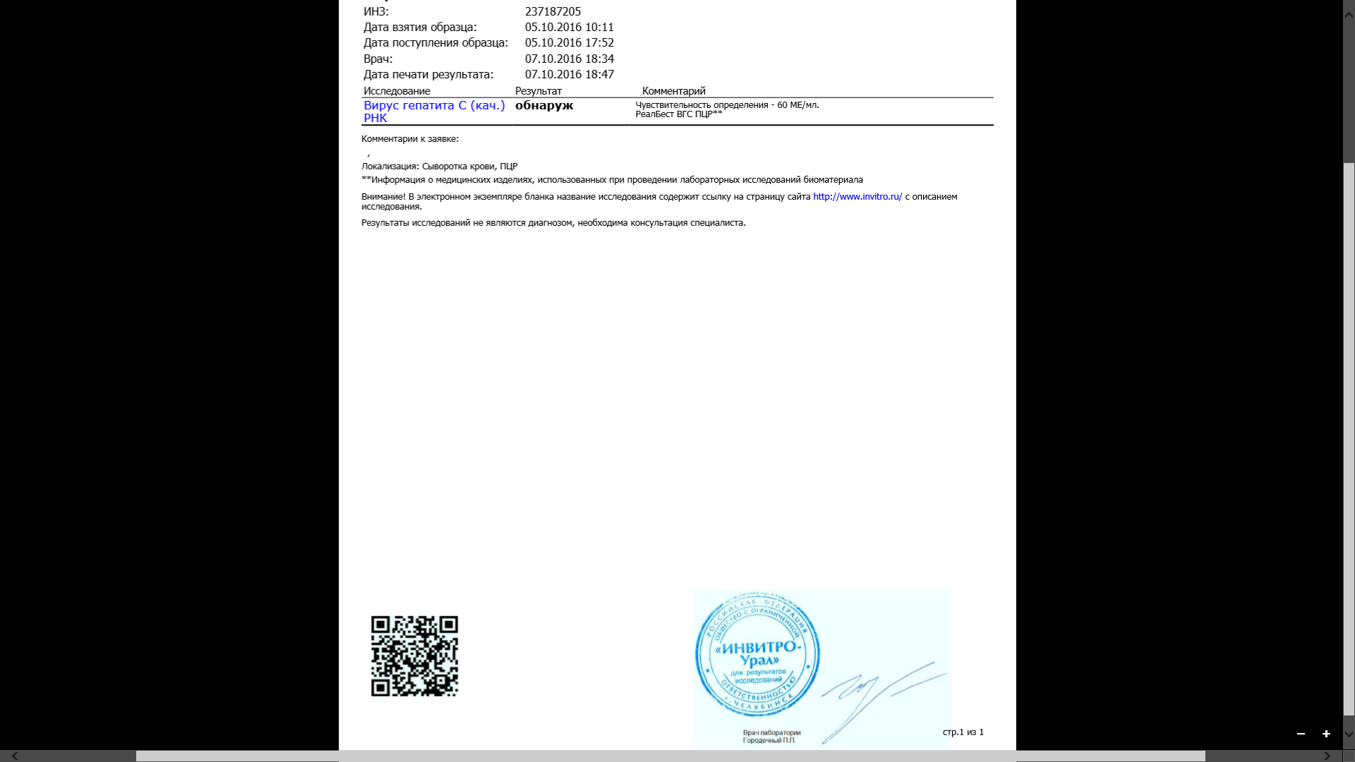 yourich 77 писал(а):Всем привет! Хочу поделиться своей печалькой. Если вкратце, то сдал я (05.10.16) после 4 недель качественный ПЦР (60Me) и получил результат "обнаружено".