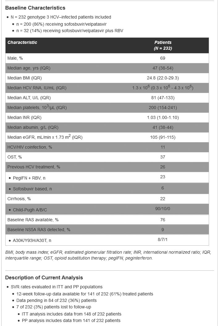 American Association for the Study of Liver Diseases/Infectious Diseases Society of America HCV management guidelines recommend use of 12-week sofosbuvir/velpatasvir in genotype 3 HCV-infected populations[3]