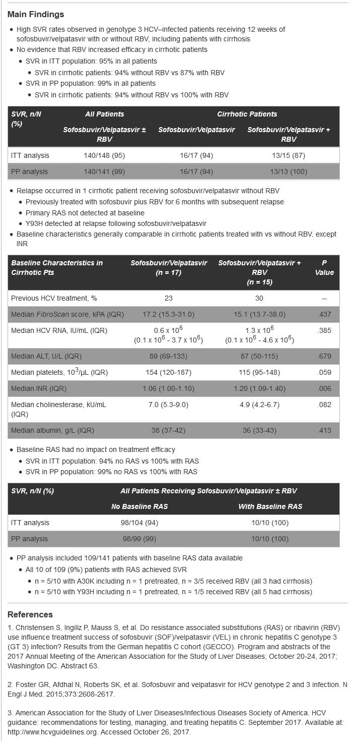 pdf у них пока нет поэтому прилагаю скриншоты:No evidence that RBV increased efficacy in cirrhotic patients