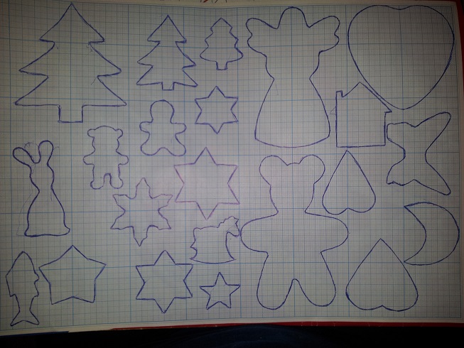 Хочу, пока есть время, выложить вам лекала. На первом фото сани и олень, я их буду делать после домика - домик внукам от старшей дочери поедет за город, а сани с оленем останутся здесь с внуками от младшей. На втором фото вырубки, какие у меня есть с новогодней тематикой. На третьей фотке лекала по ним. Маленькими пряничными фигурками можно украсить композицию с домиком, положить в санки. Большие пряники можно сделать из остатков теста, а оно всегда остается. Самое интересное - расписывать. Это мы будем делать в выходные или на следующей неделе.