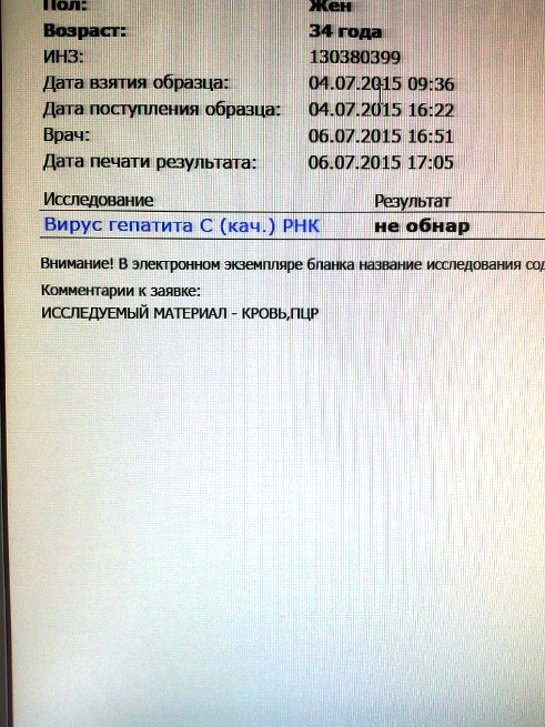 Всем привет!!! Прошла курс лечения 24 недели в январе был последний укол и сдала анализы спустя пол года и результат.....Гепатит не обнаружен!!!!