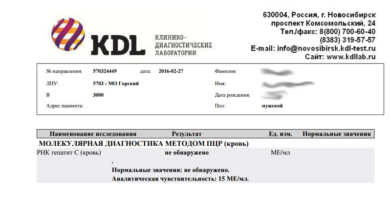 28.05.2016 KDLlab ПЦР - кач. 15 МЕ/мл - не обнаружено