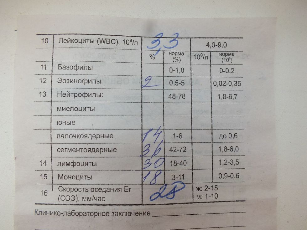 Нет, все верно! Палочкоядерные - 14 (увеличены), а сегментоядерные - 36 (снижены). В сумме цифра 50 выходит по нейтрофилам. Все - от леков, раз раньше другие показатели крови были. Это не особо страшно - так химия работает при Ф4.kliper писал(а): Палочкоядерные были 6,сейчас 14. Может запятую не поставили,за 8 дней так подняться до 14?