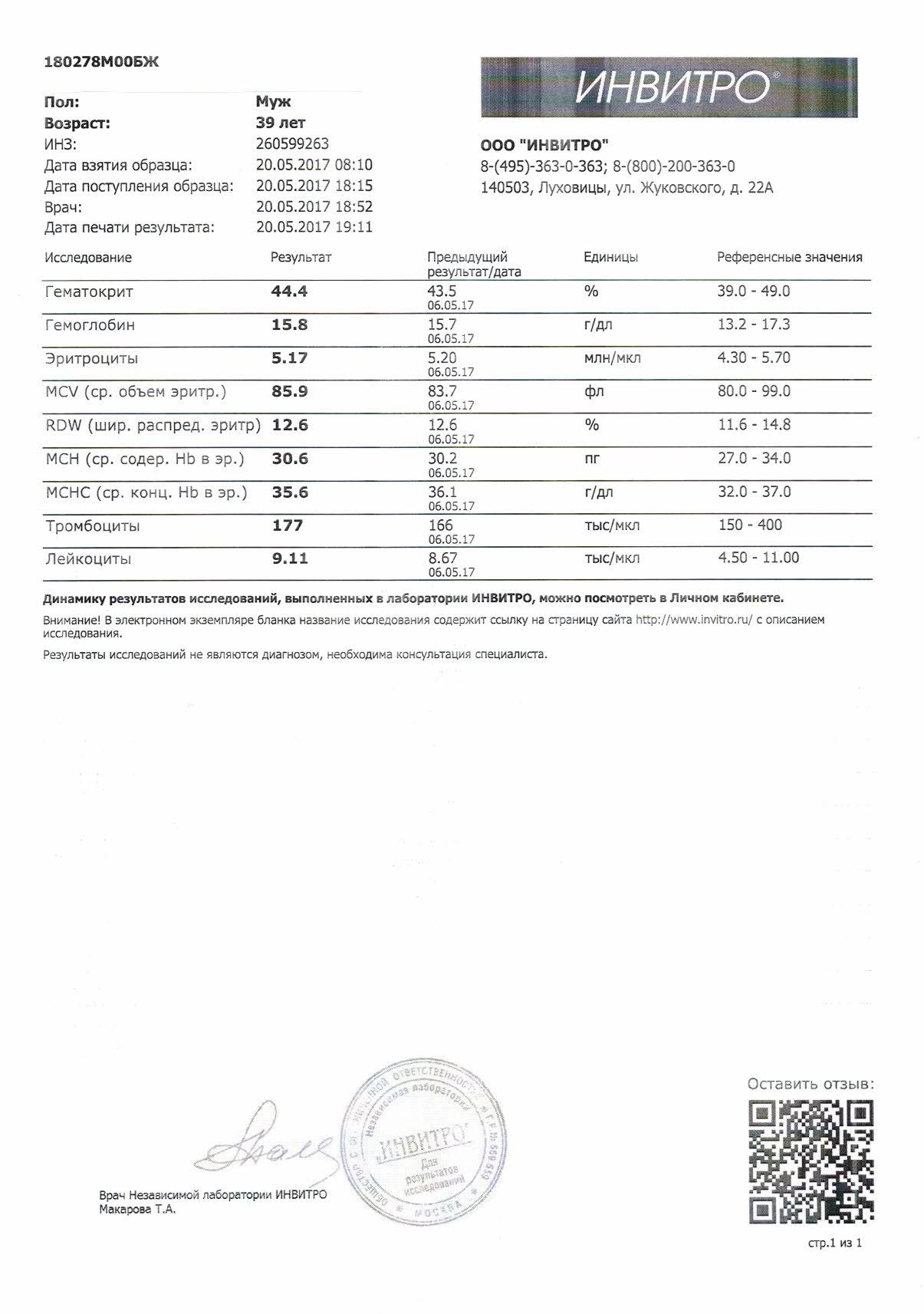 Судя по ОАК здоров как бык.