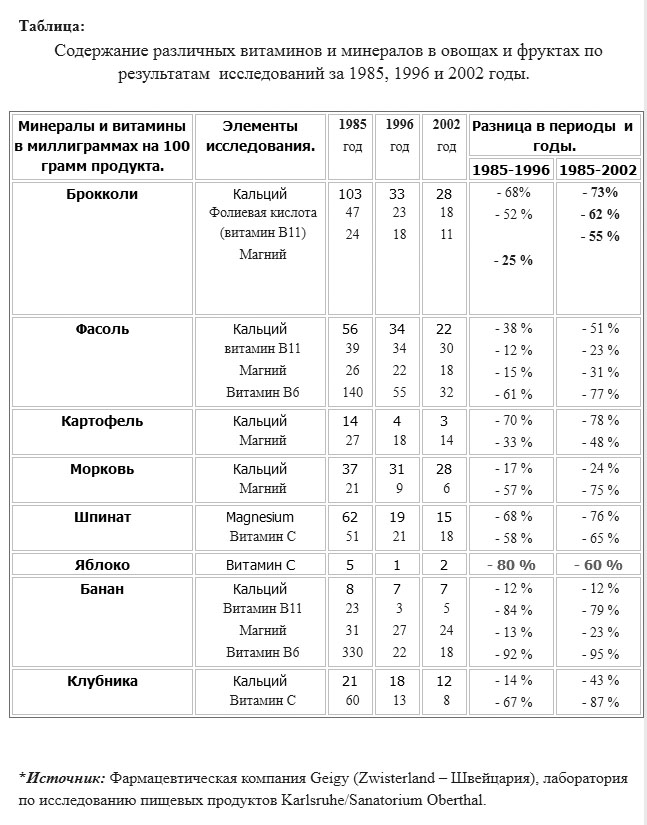 Также есть мнение, что современные продукты содержат гораздо меньше витаминов чем раньше