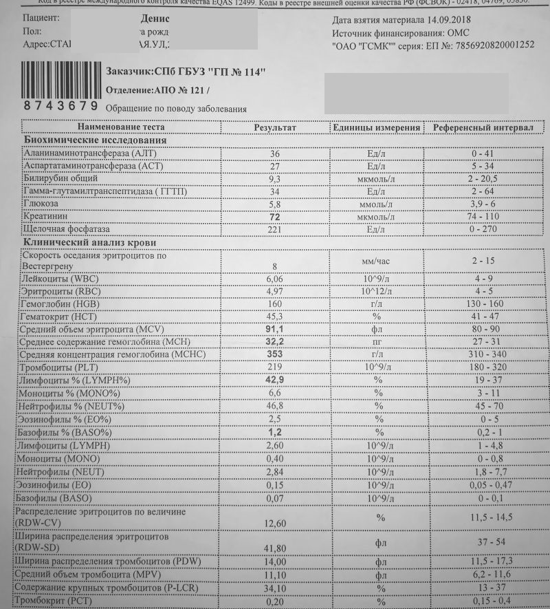АЛТ- 368, АСТ - 264, ГГТ - 126