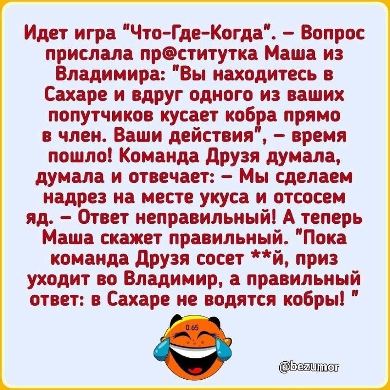 Кобра никогда не кусает выше колена, а если у вашего друга член ниже, то он спокойно может отсосать сам.