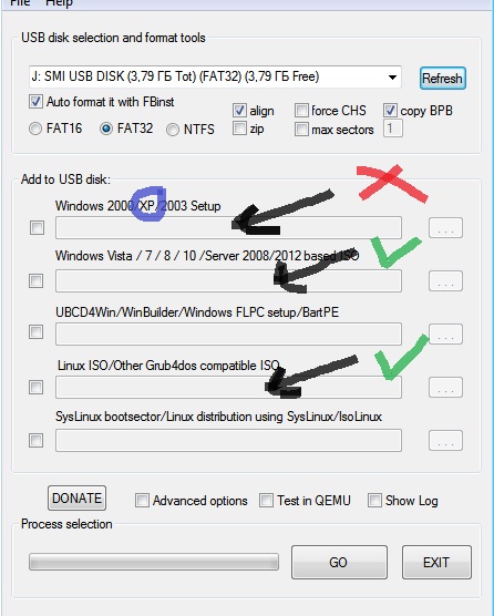 в те строки, которые обозначены зелеными галочками, винда прикрепляется, но наша ХР находится в первой строке, а туда не хочет.