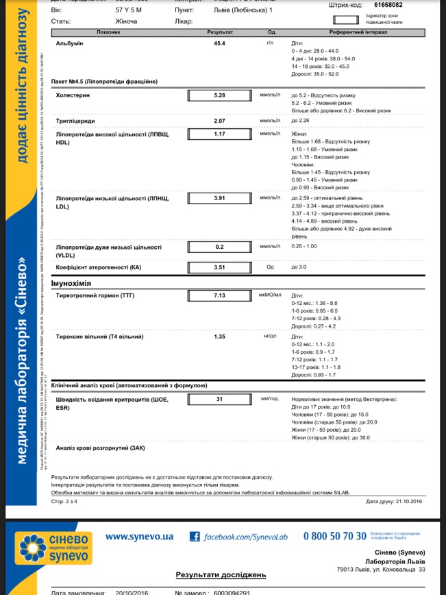 Кроме диеты (лпнп) и щитовидки (ттг) все остальное пойдет.
