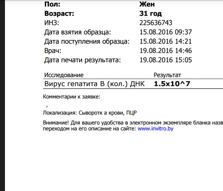 Hbsag кол-во 13 886 (27.02.16) Hbeag-, antiHbe+