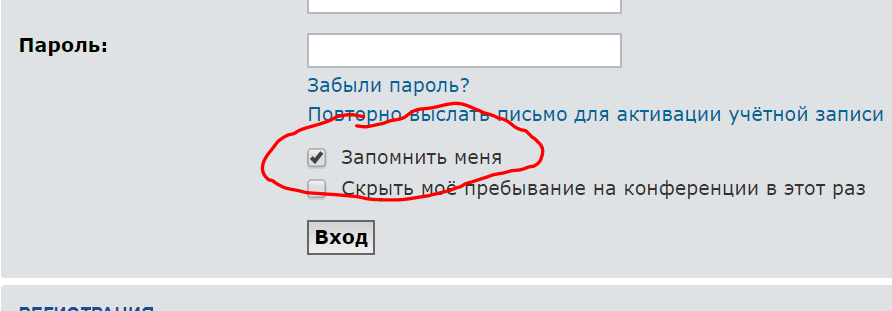 1. Проверить, что при входе стоит галочка 2. Проверить, по какому адресу заходите на форум (это имеет значение).