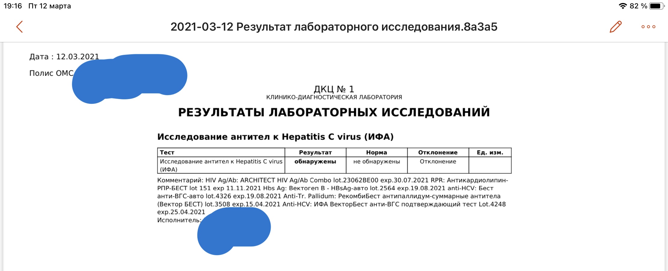 Инвитро, номер анализа 321СВ.