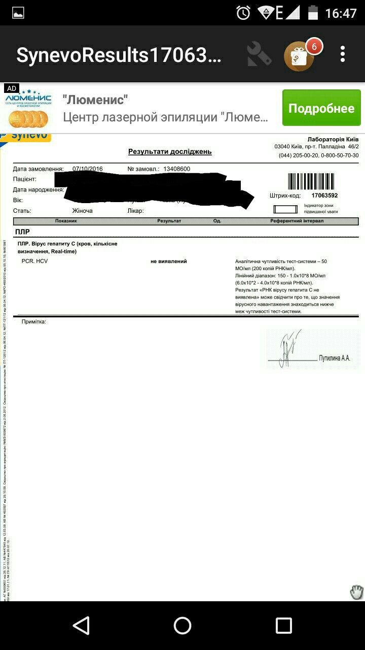 Конец терапии:31.11.2016 ПЦР качество не обнаружено