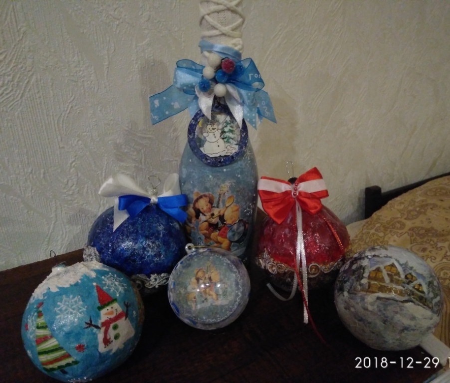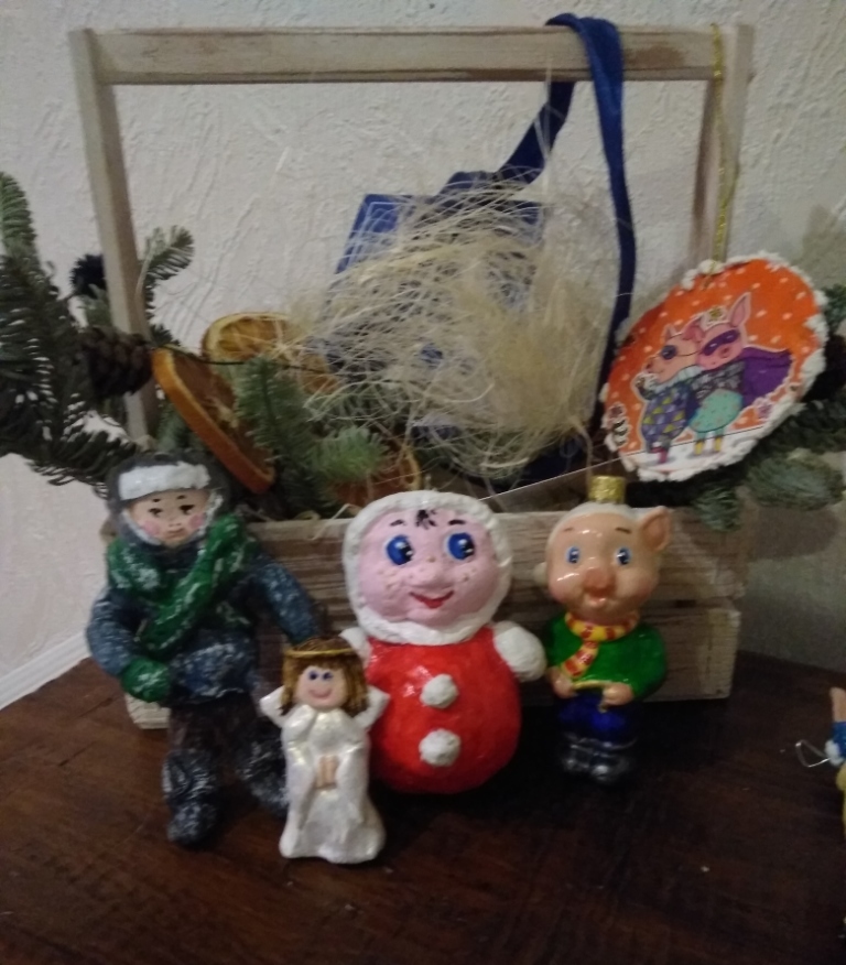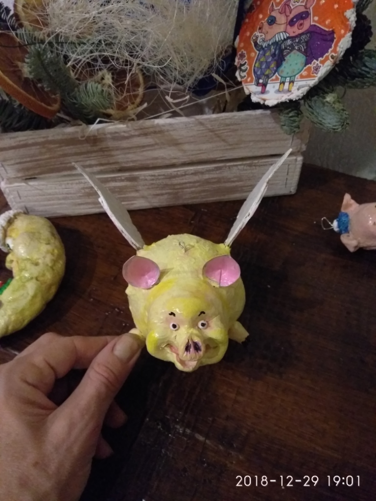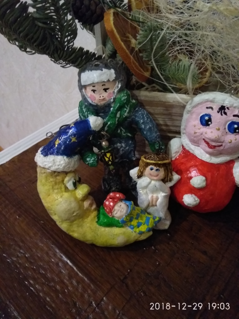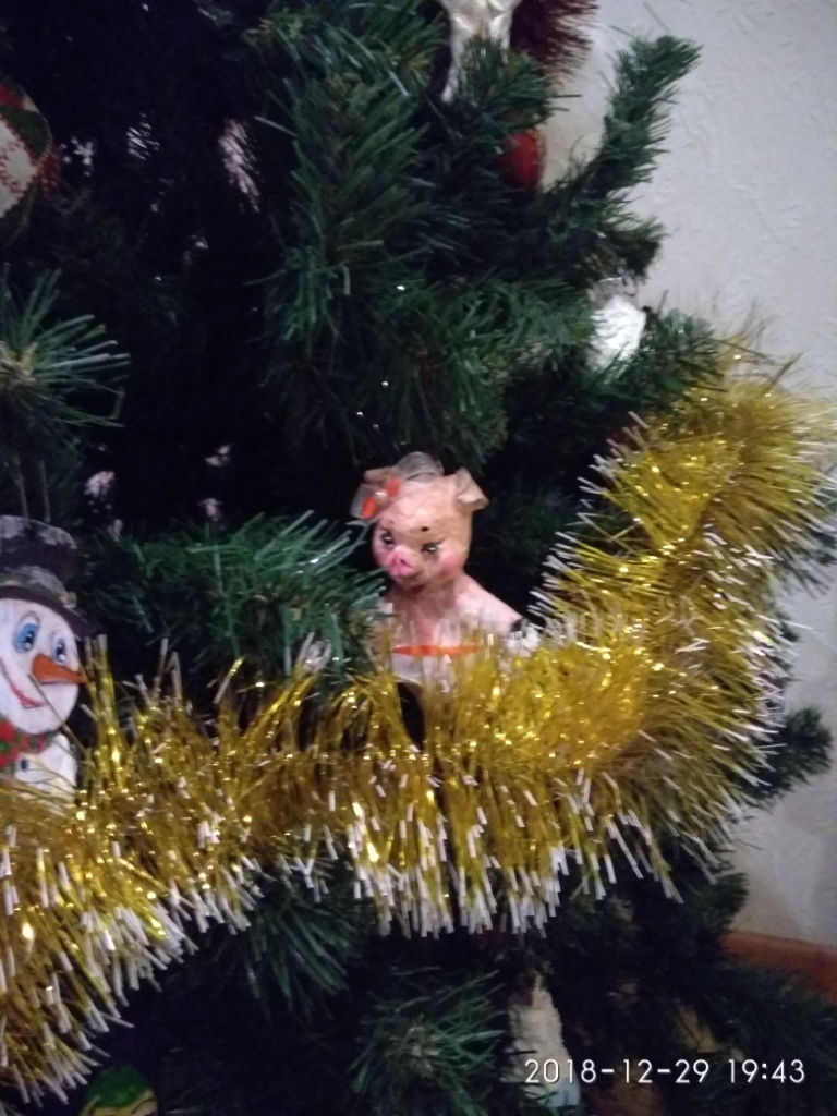 немножко свинства конца прошлого года. Игрушки в основном папье-маше, обычное и ватное, елка в этом году искусственная, но игрушки на елке все самодельные. Камин- с картонных коробок за пару вечеров собрала