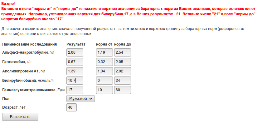 Пересчитал, внимательно проверив допустимые значения: Для точного расчета нужны нижние границы по билику и ГГТ, которых у вас нет