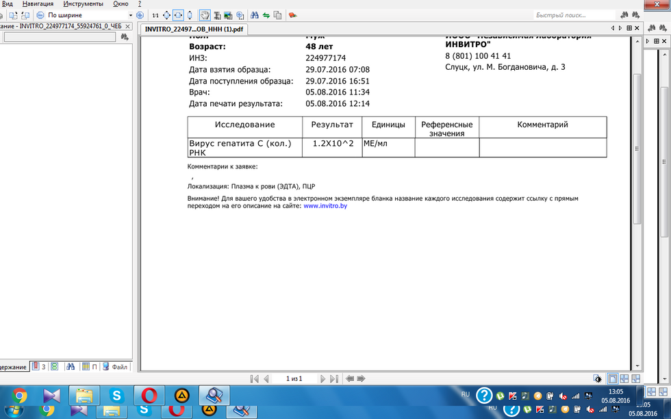 Старт 02.07.16 HepcinatLP 24 нед, 12 нед. с Ребетол, 1000мг.