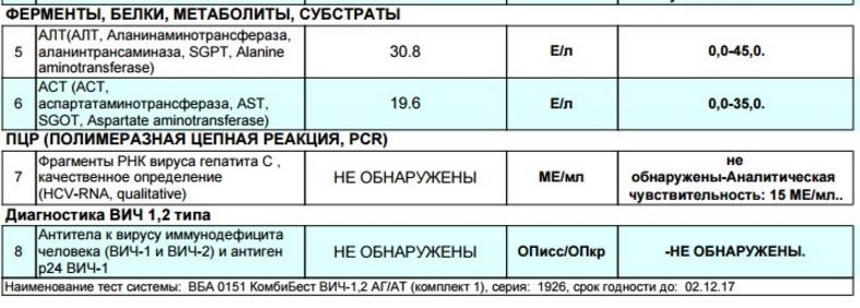 - Гепатит: Не обнаружен