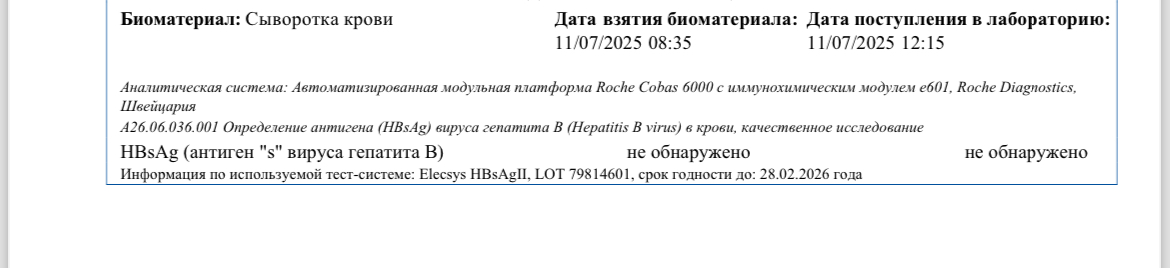 - Гепатит: Не обнаружен