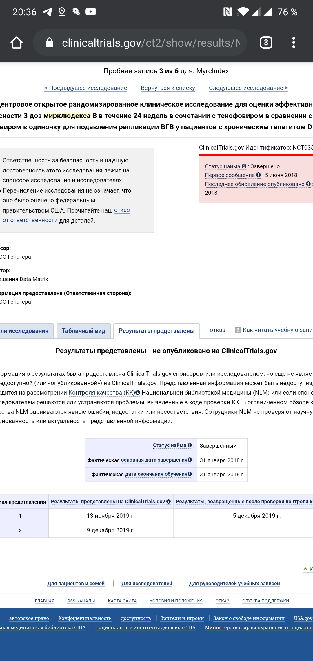 Результаты фазы 2b КИ 24 недель терапии Мирклудекс+ТДФ и посттерапийного периода.