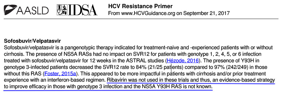 А если серьезно, то в AASLD 2017 пишут, что рибы не использовались в КИ и поэтому влияние рибов на увеличение процента УВО при ген. 3 и NS5A Y93H RAS неизвестно.