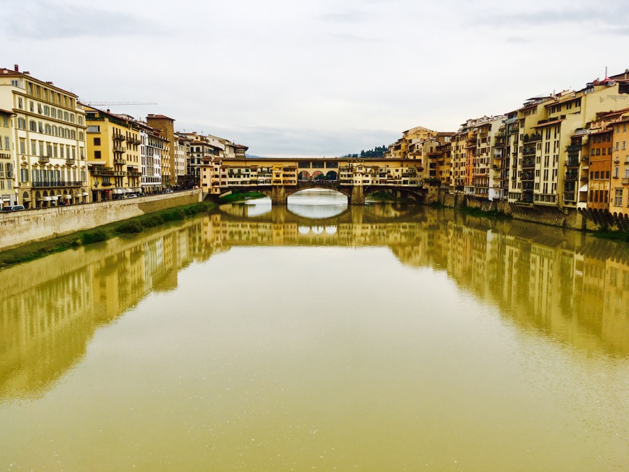 Вода реально желтая. Глинистая почва + в Апеннинах, откуда река Арно берет начало , начался сезон дождей.