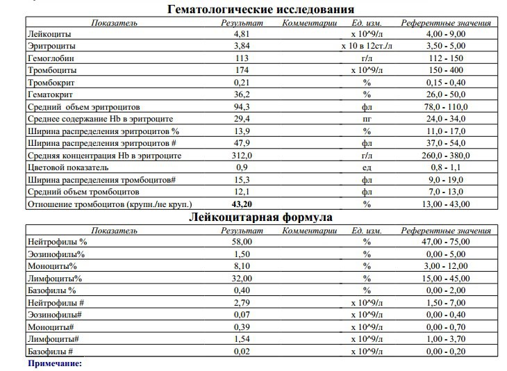 Мой новый общий анализ крови.Это после болезни(гайморит)Закололи антибиотиком,но всё равно анализы супер!))