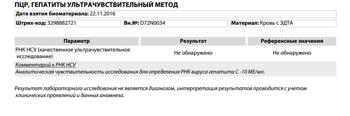 Фиброскан 08.2015 (11.0 КПа ) 01.2016 (10.4 КПа, 07.2016 -7,9кПа