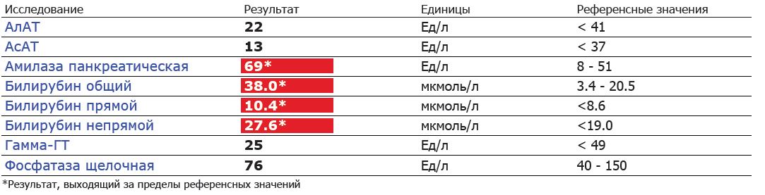 АЛТ 55.4|22|24|20 АСТ 23.3|13|13|14, билы (общ 35.4|38.0|27.9|40.7 ; прям 11.5|10.4|7.9|11.9; непрям 23.9|27.6|20.0|28.8),