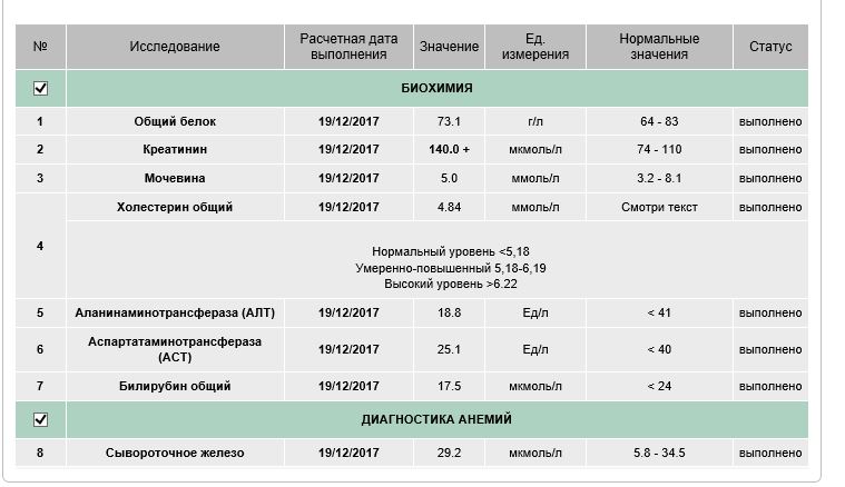 Биохимия и ОАК за 10 ноября 2017. Узи за 15 ноября.