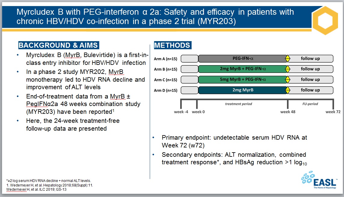 1. Myrcludex B с PEG-интерфероном α 2a: безопасность и эффективность у пациентов с хронической коинфекцией HBV / HDV в исследовании фазы 2 (MYR203)