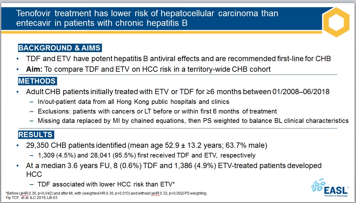 Источник: https://www.medpagetoday.com/meetingcoverage/easl/79223MedPage Today спросила модератора пресс-конференции EASL Франческо Негро, доктора медицины, из Университетской больницы Женевы, переключит ли он своих пациентов с ETV на TDF, Негро ответил с осторожностью: