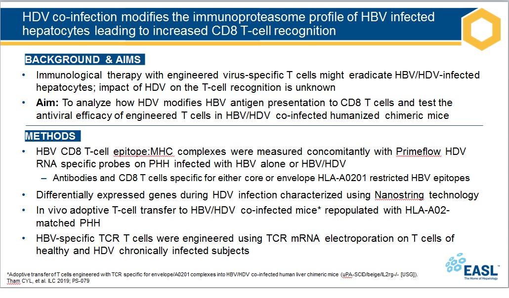 Иммунологическая терапия с помощью сконструированных вирус-специфических Т-клеток может уничтожить гепатоциты, инфицированные HBV / HDV; влияние HDV на распознавание Т-клеток неизвестно