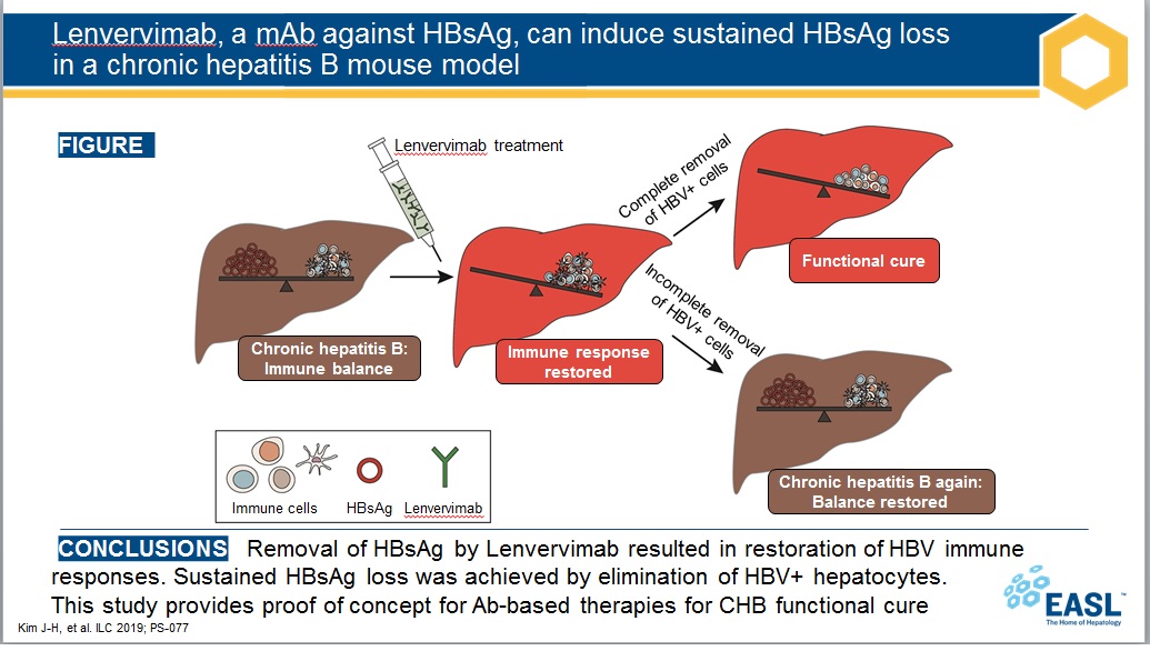 ВЫВОДЫ Удаление HBsAg с помощью Lenvervimab привело к восстановлению иммунного ответа на HBV. Устойчивая потеря HBsAg была достигнута путем элиминации гепатоцитов HBV +. Это исследование дает подтверждение концепции Ab-терапии для функционального лечения ХГВ.