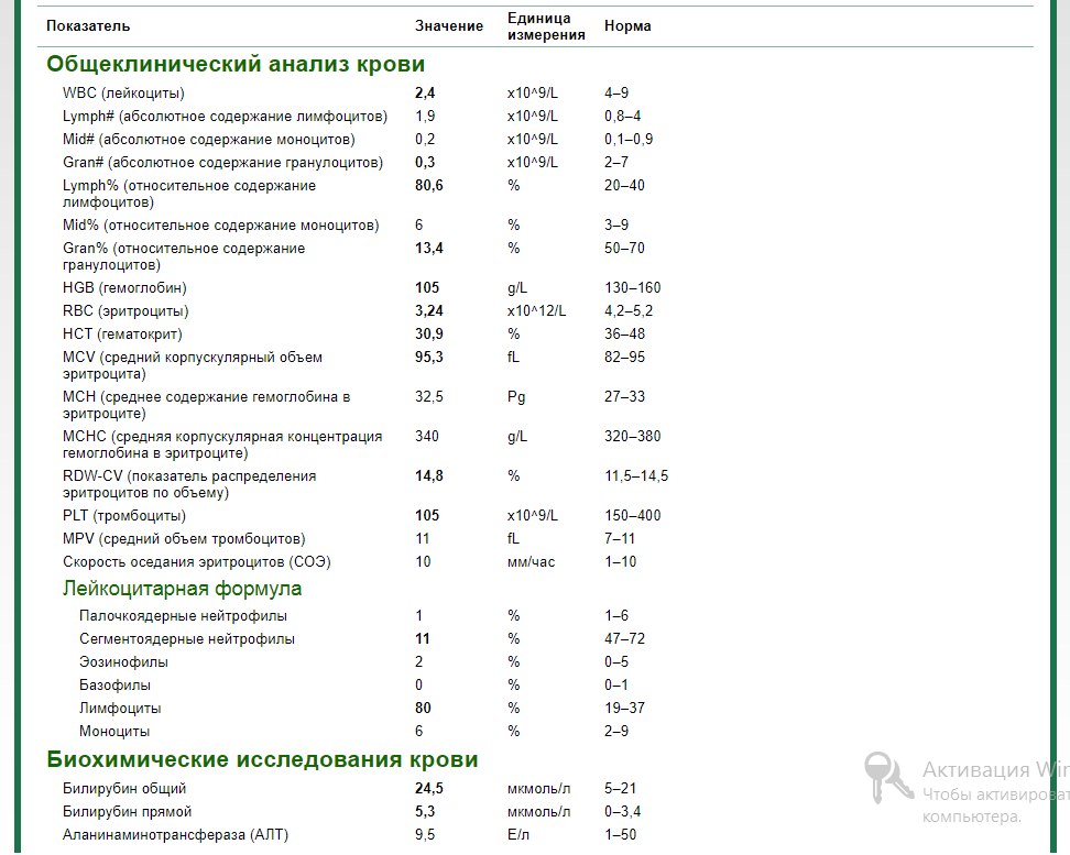 Лейкоциты 2.4, сегментоядерные нейтрофилы 11, ну и падочкоядерные 1- АЧН запредельно низкое будет!!!
