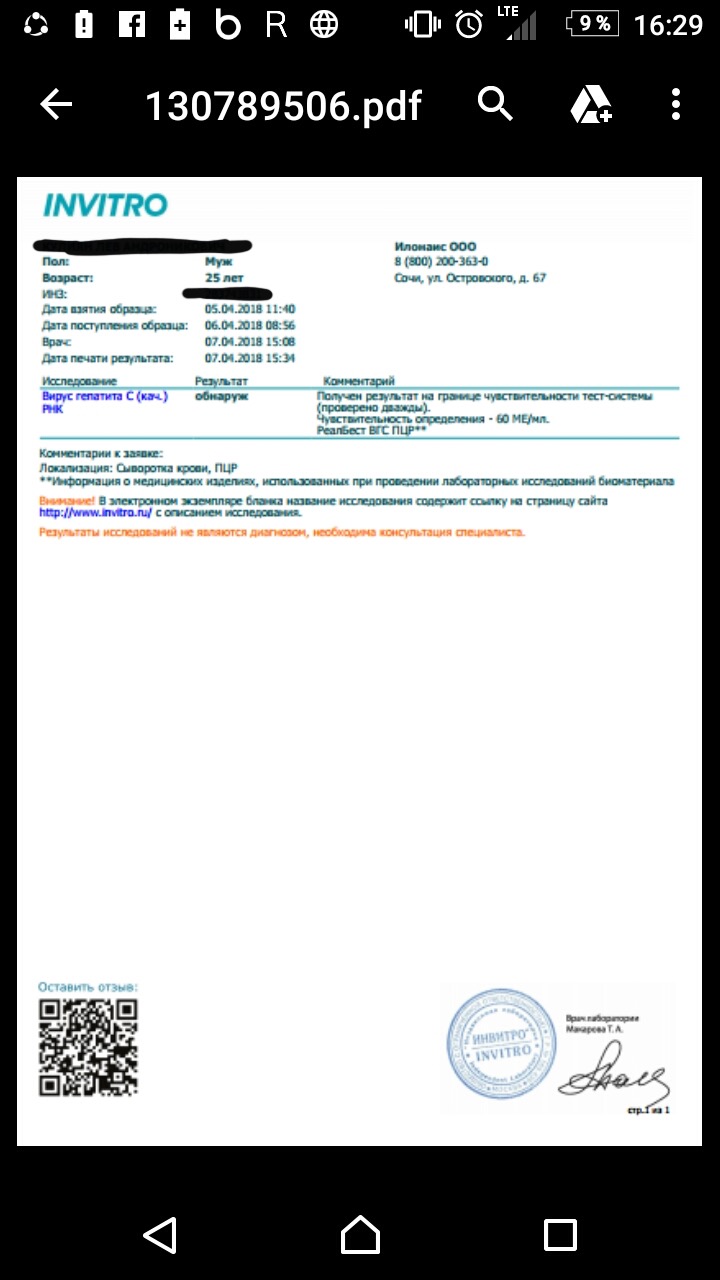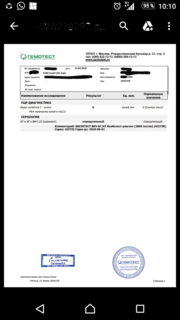 Доказательство того что ИНВИТРО делает ошибки!!!! Ура Парень сдавал в инвитро есть вирус а в гемотесте нет!!!!!!!