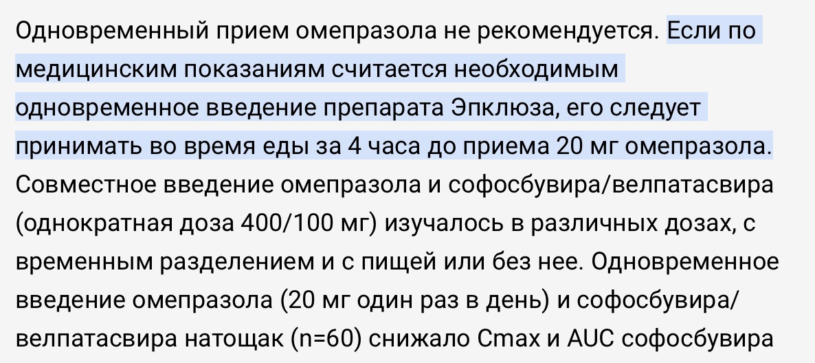Женя, за 1..2 часа до приёма Соф/вела пьём омепразол?