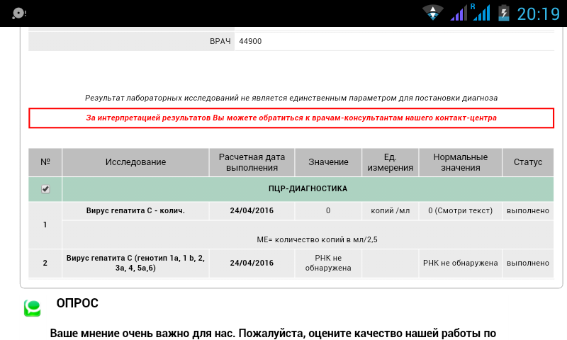 Бывает такое ,что сам организм справляется с гепатитом, тоесть антитела остаются ,но вируса нет , поэтому у нас при обнаружении вируса гепатита с ,лечение не назначают ,раньше чем через пол года ,ведь только через пол года считается ,что гепатит стал хроническим .BLO_2016 писал(а):Дорогие мои,подскажите пожалуйста!Написала мне девочка из Севастополя!Вроде как по началу говорит,что гепатит С есть!Потом дальше в переписки,она скидывала свои анализы!Короче ситуация такая,нашли у нее в нашей местной больнице антитела к Гепатиту С.Она пошла в лабораторию частную Гемотест сдала почему то не кач-во,а кол-во и анализ на генотип!В общем пришли ей анализы ПЦР гепатита С кол-во - 0 и генотип - не обнаружен!Правильно ли я поняла,что у нее просто нет его в крови? Можно ли не сдавая кач-во,определить только по этим??? Так так вроде врач говорил,что наличие антител возможно,либо у беременных,либо у людей,чей организм сам переборол эту заразу и просто остались антитела,а сам человек не болен!Врачиха с инфекционки основываясь только на антителах втирает ей,что она больна гепатитом С.Что вы думаете больна она или нет?? Анализов других у нее нет!!