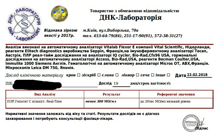 ПЦР кач. (15МE/мл., ИНВИТРО) через 12 недель - минус. Вирус гепатита С не обнаружен