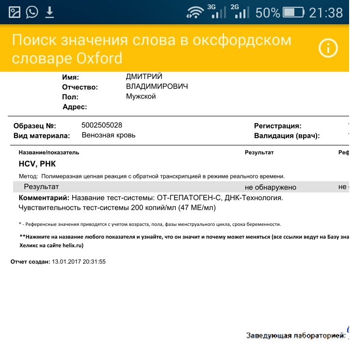 Старт ПВТ:12.01.17 Геп.С 2 F?Нагр. 2,2*10^6 Соф.+Дак. Cimivir+Daclawin \optimist86\ на 12 нед.+диета; 2 нед. ПЦР не обн.\ 50 Ме\мл; 4 нед. не обн.\60Ме\мл\ ; 6 нед. не обн.\60Ме\мл\
